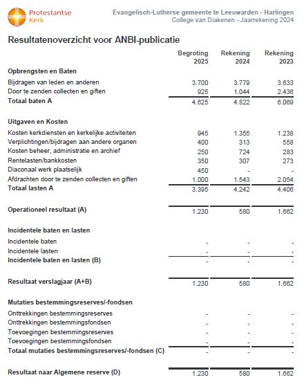 Gezamenlijk overzicht van de gemeente en de diaconie.